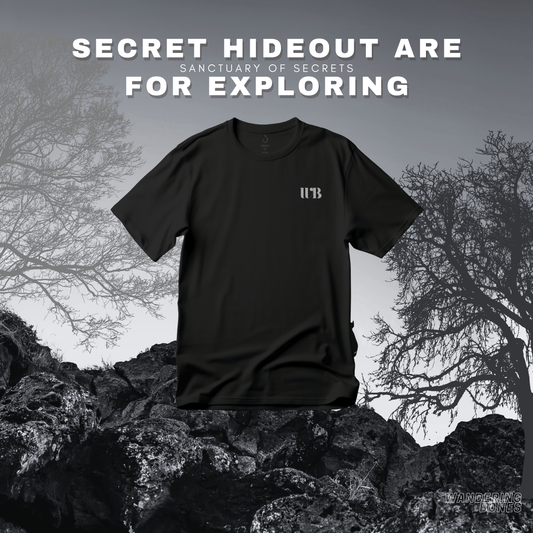 Secret Hideout Retro Outdoor Graphic Unisex Streetwear T-shirt in Black