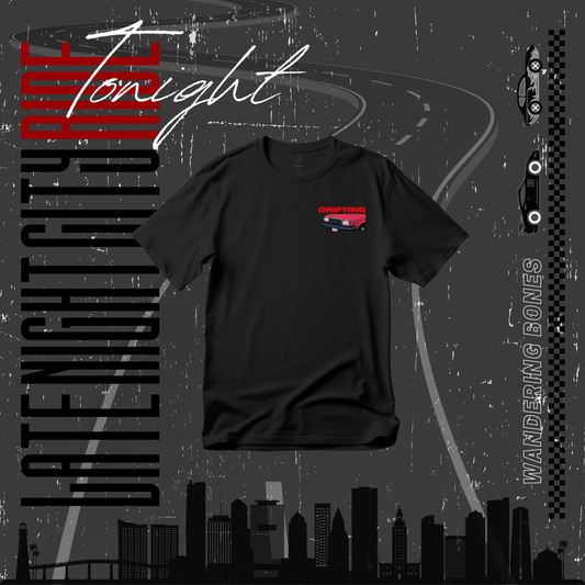 Late Night City Ride - Drifting Unisex Streetwear T-shirt in Black
